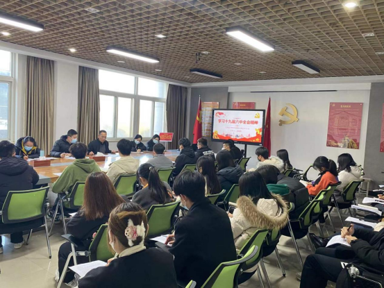 20211221日下午3时,艺术设计学院马克思主义理论学习小组在306会议室开展“中国共产党第十九届六中全会精神”专题学习,学院党委书记金振胜、教工支部书记张山林、荆书芳、学生支部书记朱鸽、袁兴龙以及2021级马克思主义理论学习小组全体成员参加本次学习。