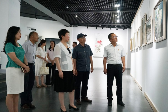 姜彦玲一行首先来到美术馆观看“驻马店市教育系统庆祝建党一百年周年师生书画作品展”并对圆梦坊、达内数字艺术学院、梦工场等处进行实地调研,而后到达支部书记工作室、“双带头人”工作室、党员活动室、健康驿站、阅读驿站等处实地考察我院党建工作阵地。参观过后,姜彦玲一行来到306会议室与艺术设计学院教师代表开展党史学习教育座谈会。