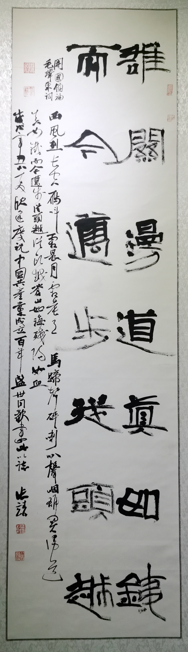 展览以中国共产党的百年发展历程为主题,以书法、绘画和摄影回顾党的百年风华。油画《半条被子》立意高远、撼动人心,水彩画《老红军》表情生动、刻画入微,水彩画《长在红旗下》色彩鲜明、内涵丰富,中国画《抗战老兵》刚柔相济、构图巧妙,从气势雄壮的金沙江畔到见证历史的瑞金第二次苏维埃会议旧址,从峥嵘岁月的长征往事到走过烽火的革命老兵,让广大师生回味峥嵘岁月、感受辉煌巨变。