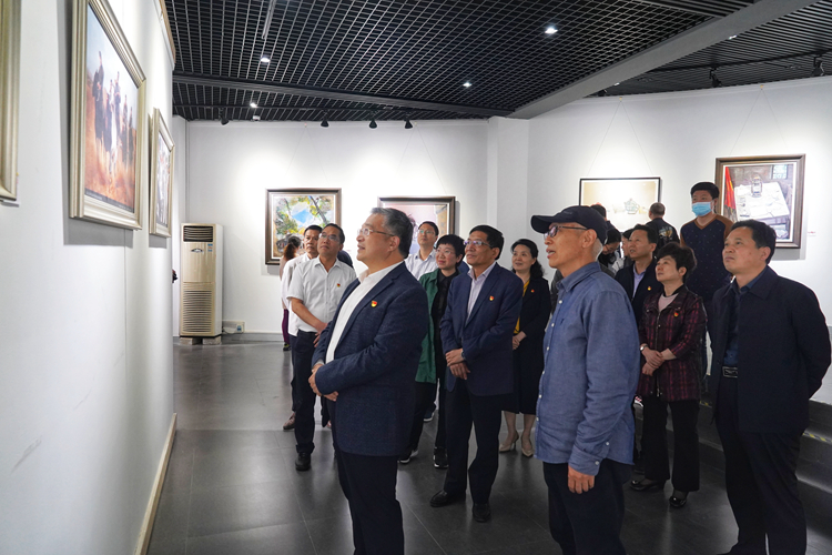 为深入贯彻习近平新时代中国特色社会主义思想,落实党史学习教育活动要求,推进党史学习教育工作的深化提升,乘势而上开新局,砥砺奋进“十四五”,通过以画为体、以史为魂,以中国共产党的百年发展历程为线索,生动再现中国共产党100年来波澜壮阔的光辉历程。518日上午,由黄淮学院党委宣传部、艺术设计学院联合举办黄淮学院庆祝中国共产党成立100周年书画摄影作品展”在黄淮学院美术馆隆重开幕。黄淮学院党委书记李国胜,党委副书记王冰,党委副书记、工会主席曹忠义,党委委员、副校长张新艳、耿红琴、张艺迪,党委委员、纪委书记、监察专员姜彦玲到现场观展。相关部门负责同志及艺术设计学院近百名师生党员代表观看了此次展览。
