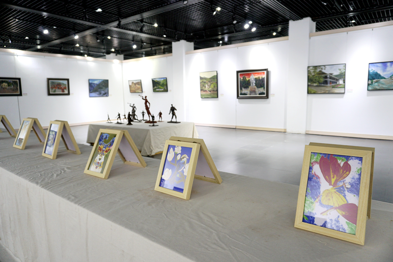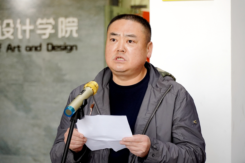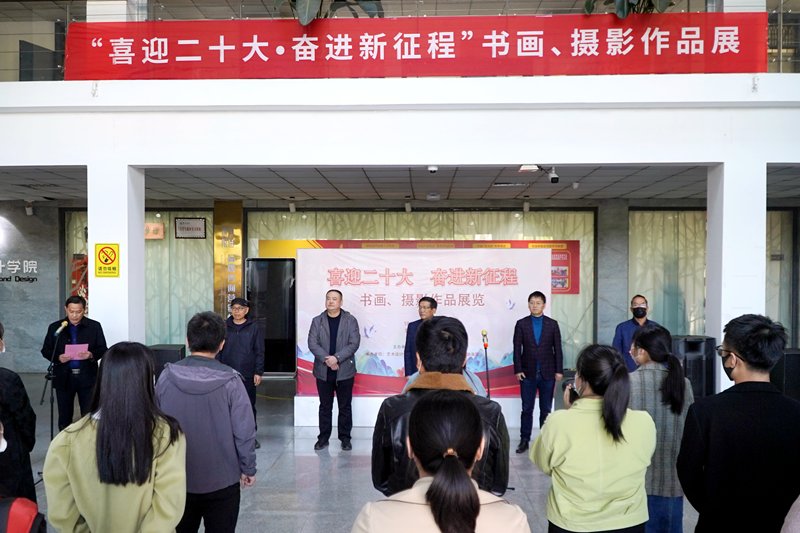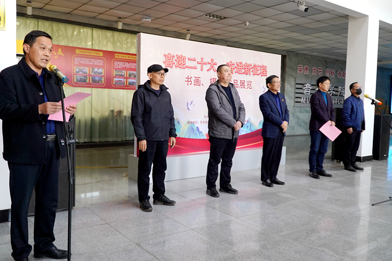 王东云在致辞中指出,本次展出的作品均是黄淮学院师生和驻马店市美术家协会会员的原创作品,融政治性、时代性、思想性、艺术性为一体,墨韵言志,光影传情,展现了天中大地的时代之光、发展之势、幸福之乐,凸显了广大艺术工作者奋发进取、锐意创新的精气神。在党的二十大即将召开之际,希望广大师生和艺术工作者坚持以人民为中心的创作导向,紧跟时代步伐,扎根人民,增强文化自信,自觉承担起举精神之旗、立精神之柱、建精神家园的崇高使命,用健康向上的艺术作品去启迪心智,为推动新时代社会主义文化艺术事业的繁荣发展做出积极的贡献。