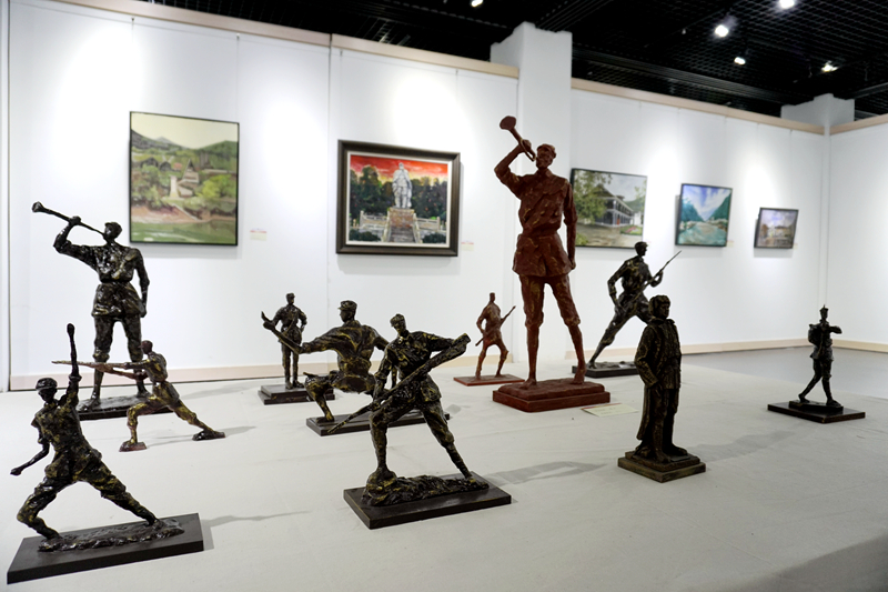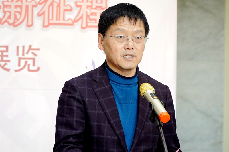 李伟力首先介绍了展览的筹备情况。同时感谢学校党委宣传部的大力支持和驻马店艺术家的热烈响应。本次展览共展出油画、中国画、书法、摄影共80余幅作品,不少作品曾在全国美展中获奖。参展作品主题鲜明、立意高远。画家通过艺术的语言,礼赞伟大的党、伟大的祖国、伟大的人民,表达听党话、跟党走的坚定信心和对党的二十大胜利召开的衷心祝愿。
