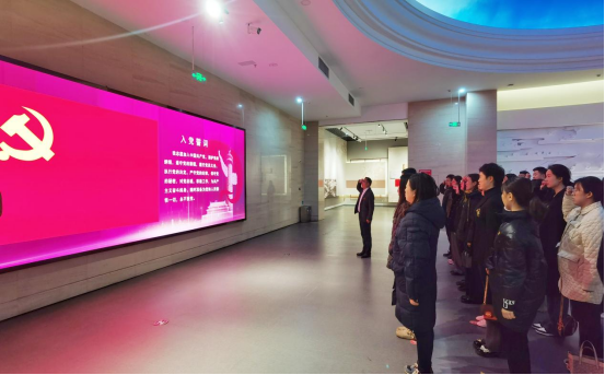 面对高耸的杨靖宇将军塑像,全体师生整齐列队,庄严肃立。艺术设计学院党委书记金振胜向杨靖宇将军塑像敬献花篮,并整理花篮缎带。全体人员鞠躬默哀。在讲解员的引导下,师生党员通过一幅幅图片、一件件文物、一段段历史,追寻革命先烈红色足迹,用心聆听关于杨靖宇将军的峥嵘往事。鲜活的雕塑,逼真的绘画作品,让每一位参观者仿佛置身于那个战火纷飞的年代,感受杨靖宇带领抗联战士驰骋于白山黑水之间英勇作战,最终棉絮果腹战斗至死的英雄事迹。在宣誓大厅,党委书记金振胜带领全体党员重温入党誓词。“我志愿加入中国共产党,拥护党的纲领,遵守党的章程……”紧握的右拳,铿锵的誓词,让党员们重温了入党时的初心和奋斗追求,激励了党员们奋发有为,为党奋斗。