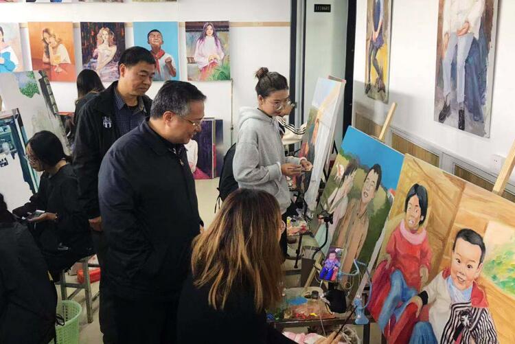 李国胜书记在梁立民陪同下参观了教研室、工作室,认真听取了梁院长对艺术设计学院师资情况、工作室建设情况的汇报,李国胜书记对艺术设计学院艺术氛围的营造、近年来取得的发展成就表示了肯定。李书记指出:艺术设计专业肩负价值传播的重要职责,是校园文化传承和宣传的重要途径,在人才培养、教学中更应该把知识传授与价值引领有效结合。