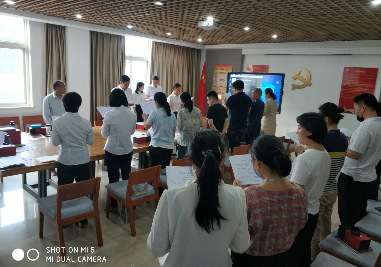 面对鲜红的党旗,李信生书记作为领誓人,带领党员们一起高举右手,再次庄严宣誓。“我志愿加入中国共产党……随时准备为党和人民牺牲一切,永不叛党。”铿锵恢宏的誓词,强烈震撼着在场的每一位党员,一字一句,神圣而豪迈,体现了党员同志们对中国共产党的无限忠诚。