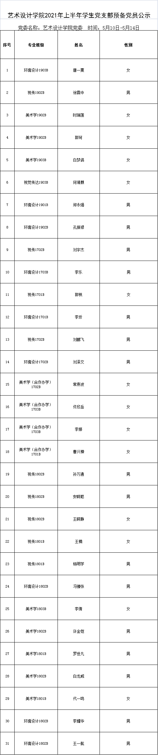 根据《中国共产党党章》和《中国共产党发展党员工作细则》规定,经培养考察、民主推荐,院党党委研究,学生支部委员会于5月10日讨论通过,确定唐一粟、徐震中等31位同志为本次预备党员,现将31位同志的基本情况予以公示,接受党员和群众的监督。