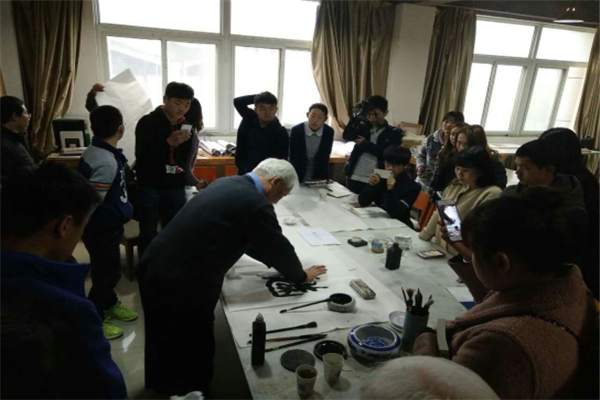 交流会最后,张先生欣然为我院书写了魅力天中、艺无止境、圆梦坊等精美的书法作品。这次交流会开阔了我院老师和同学们的艺术眼界,增添了我院的学术交流氛围,大家都受益匪浅。