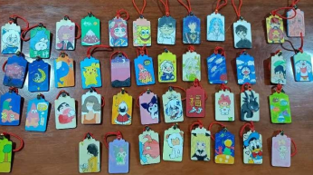 为了丰富疫情防控常态化形势下的校园生活,营造校园文化艺术氛围,提高学生的艺术鉴赏水平,绘言绘语手绘协会主办了创意吊牌活动。活动要求同学们利用丙烯颜料在木牌上创作自己喜欢的作品,天然的木纹结合多彩的颜色,组成了一幅幅艺术作品。李莹、铁豪两位老师全程参与并指导了此次活动。