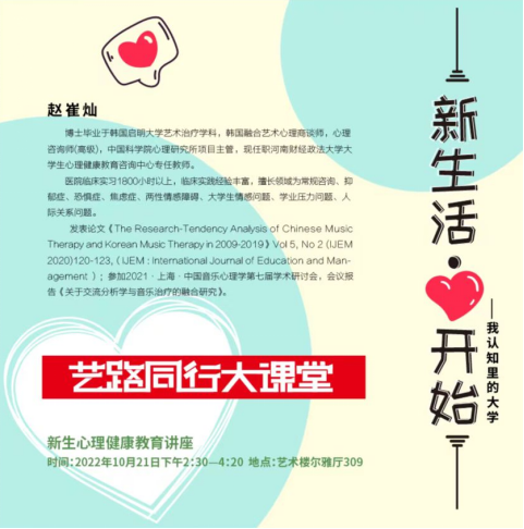 为增强大学生心理素质,促进大学生心理健康良好发展,帮助2022级新生获得适应新环境需要的技巧,艺术设计学院于1021日下午14:30在尔雅厅开展新生适应问题经验交流会。出席交流会的有:河南财经政法大学大学生心理健康教育咨询中心赵崔灿博士主讲,黄淮学院心理健康服务中心全体工作人员、艺术设计学院全体学工人员参加,由二级心理健康服务站副站长朱鸽主持2022级全体学生参加。