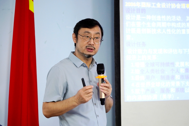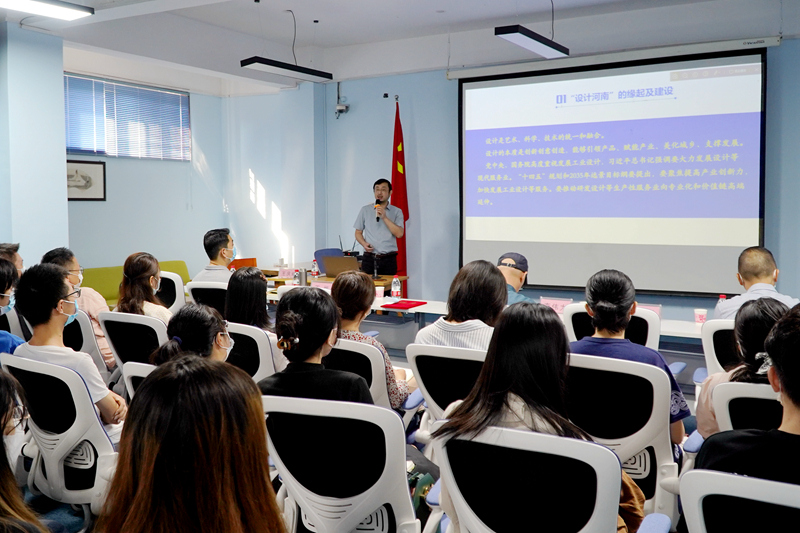 之后王庆斌教授以“设计河南”建设下的设计学科专业建设研究与实践为题,从“设计河南”缘起及建设、设计相关理论政策及国内外设计产业发展价值及趋势、“设计河南”建设中长期规划政策及解读、“设计河南”建设下的设计思考等四个方面进行了讲解。他提出的“四创”教学理念(创新、创意、创业、创造)、“四实”教学方法(实习、实践、实题、实战)以及工作室教学模式、政产学研等理念为我院学科专业建设的发展提供了新的改革思路。