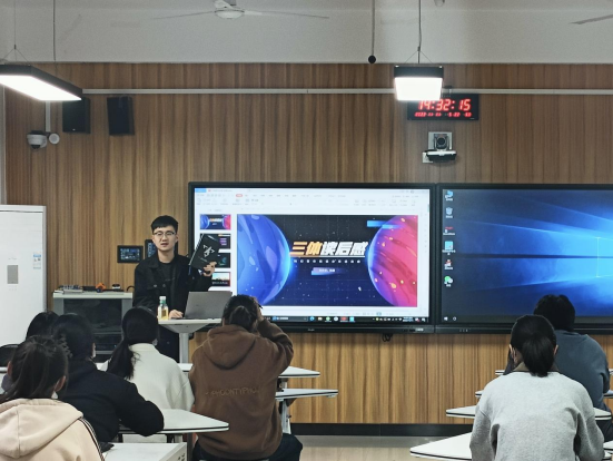 铁老师本期为大家带来的交流书目是刘慈欣的《三体》。他首先以小故事的形式告诉了同学们阅读这本书的契机,随后对这本书中蕴含巨大的想象力和宏大的正向价值观表示肯定。接着,他和同学们一起深入交流书中细节,并观看了国内外对这本书的评价、对作者的采访。最后,铁老师倡导同学们要开阔视野,通过阅读学习可以从另一个角度认识科学,将日常所学专业知识进行内化吸收,结合生活实际积极思考,学以致用、实践自我价值。
