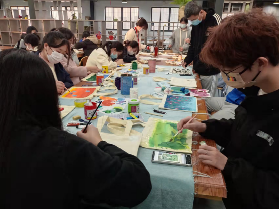 为了丰富防控常态化形式下的校园生活,营造校园文化艺术氛围,提高学生的艺术鉴赏水平,绘言绘语手绘协会主办了创意布包DIY活动。活动要求同学们利用丙烯颜料在帆布包上创作自己喜欢的作品,棉麻布料质感结合多彩的颜色,组成了一个个实用的文创产品,同学们拎着自己绘制的布包,成就感满满。李莹老师全程参与并指导了此次活动。