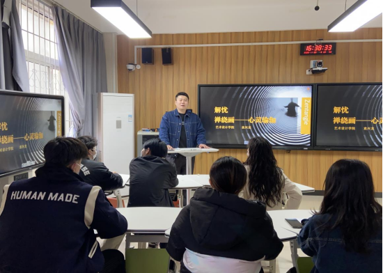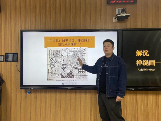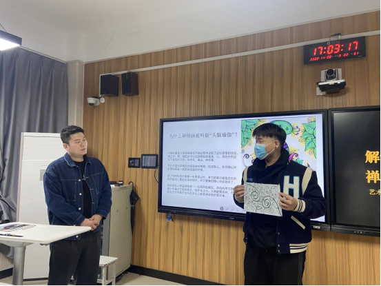为进一步加强和改进心理育人工作,探索心理育人的新形式新方法,促进学生心理健康发展,11月20日下午四点,艺术设计学院袁兴龙老师以“解忧禅绕画——心灵瑜伽”为主题的心理团体辅导在艺403教室举行。