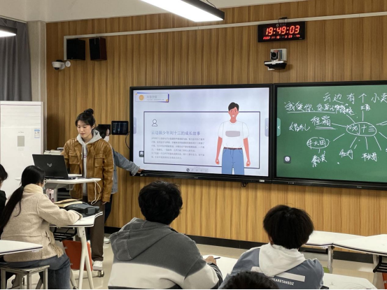 活动首先由电影片段引入,随后两位主讲人一边为大家讲述云边镇少年刘十三的成长故事,一边在黑板上对故事人物关系进行了梳理分析。主人公自幼与开小卖部的外婆相依为命的故事情节,触动了现场的所有同学,引起了同学们对爱情、亲情以及人生的深入思考。大家在交流中达成共识:应当在拥有的时候学会珍惜身边陪伴的人和此刻拥有的生活,以梦为马,披荆斩棘,让自己的青春绽开绚烂之花。