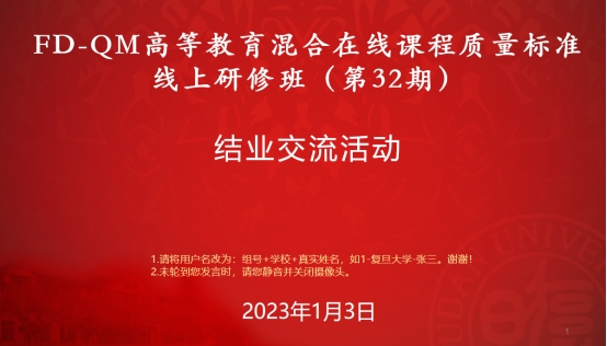 为进一步贯彻落实教育部关于“金课”建设的要求,提升教师信息化教学水平,推动课堂教学模式改革,2022年11月24日至2023年元月3日,艺术设计学院联合教师发展中心邀请复旦大学专家团队组织开展“第二期FD-QM高等教育混合在线课程质量标准线上研修班”。我院7位教师参加了此次培训。