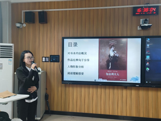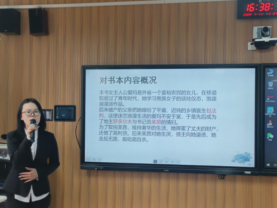 4月11日下午,艺术设计学院于403教室开展了第二十八期读书交流会,本期主讲人为2022级环境设计专业学生陈霞,交流书目为《包法利夫人》。