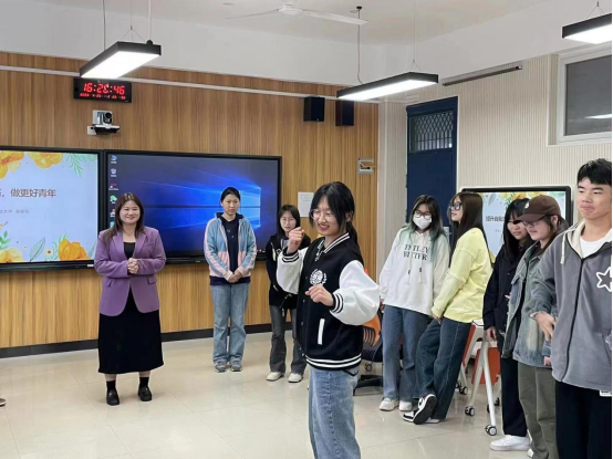 讲座采用音乐疗愈的方式展开。赵博士引导同学们勇敢介绍自己进行暖场互动。随后在音乐与游戏中进行了“好好打招呼”和“传递快乐”两个环节,让同学们放松身体、敞开心扉,进行了心理方面的话题交流,并对同学们提出的心理困惑答疑。赵博士根据同学们的反馈,给出了提升自我效能的建议,教导同学们要珍惜美好生活,愉悦接纳自己、努力提升自己,保持健康良好的心态、培养独立的人格,做更好青年。