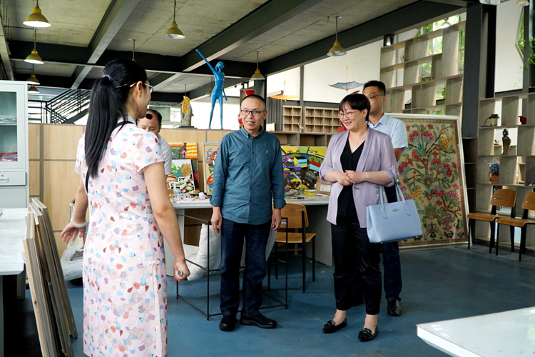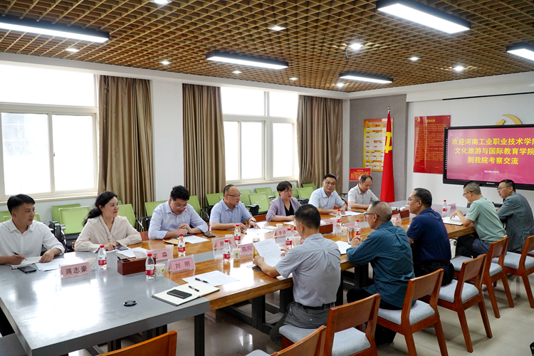 6月8日下午,河南工业职业技术学院文化旅游与国际教育学院党总支书记李诗泉、院长王冕等一行七人来我院考察交流。艺术设计学院党委书记金振胜、院长李伟力,党委副书记丁烨,副院长陈向阳以及相关部门负责人陪同参观圆梦坊、天工书院并参加座谈交流。座谈会由艺术设计学院党委书记金振胜主持。