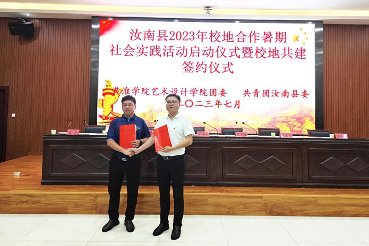 为全面贯彻落实中央省市区推进乡村振兴重大决策部署,积极促进城乡融合发展, 7月13日,汝南县2023年校地合作暑期社会实践活动启动仪式暨黄淮学院艺术设计学院团委与汝南县委校地共建签约仪式在行政新区中心楼二楼会议室隆重举行。