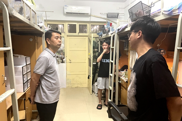 为深入了解我院暑期留校学生考研学习情况,进一步开展大调研大走访活动,推动主题教育走深走实,8月4日下午,院党委副书记丁烨、学工办主任戚建永、考研指导老师史哲宇来到学生宿舍和考研自习室,走访慰问暑期留校考研学生,了解考研学生学习生活等情况,深入调研、及时解决学生遇到的实际困难和问题,切实为考研学生保驾护航。