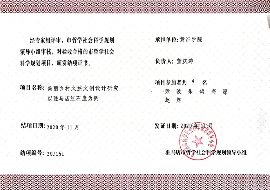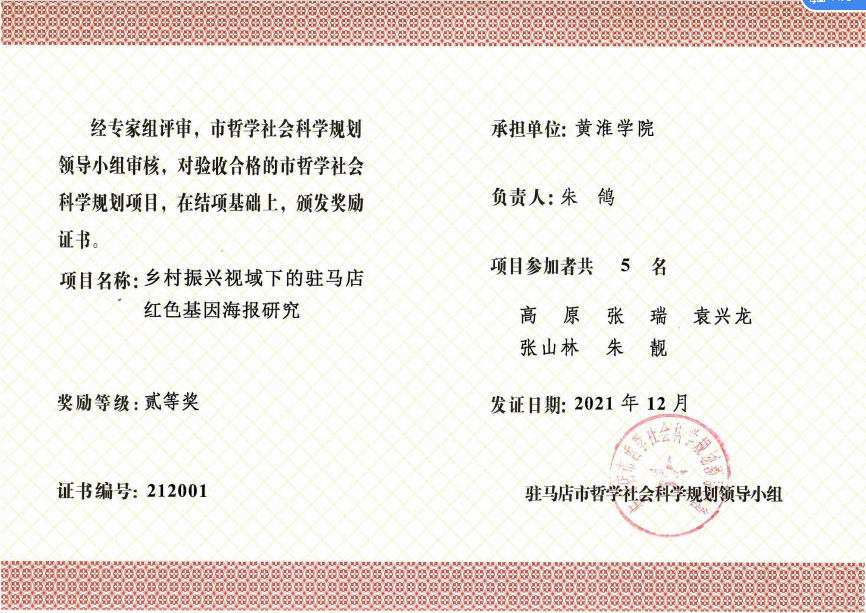 》《加快推进驻马店乡村振兴战略中的农村电商研究》《乡村振兴视域下的驻马店红色基因海报研究》《