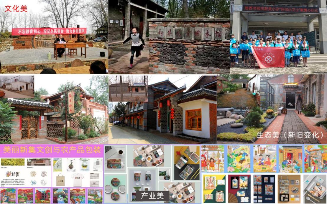 乡村美育服务团队近年来一直从理论教学与项目实践中服务乡村脱贫与乡村振兴工作,并积累了一些成功的案例经验。以河南信阳新集村为例,团队自2016年开始参与乡村的改造建设,并在乡村形象、文创产品设计、农产品包装设计、民俗文化传承传播上努力践行,课程开展中,不同专业学生间、师生间、学生与村民间深入交流沟通,学生积极参与并融入乡村生活中,用实际行动来实现乡村更美好的理念。