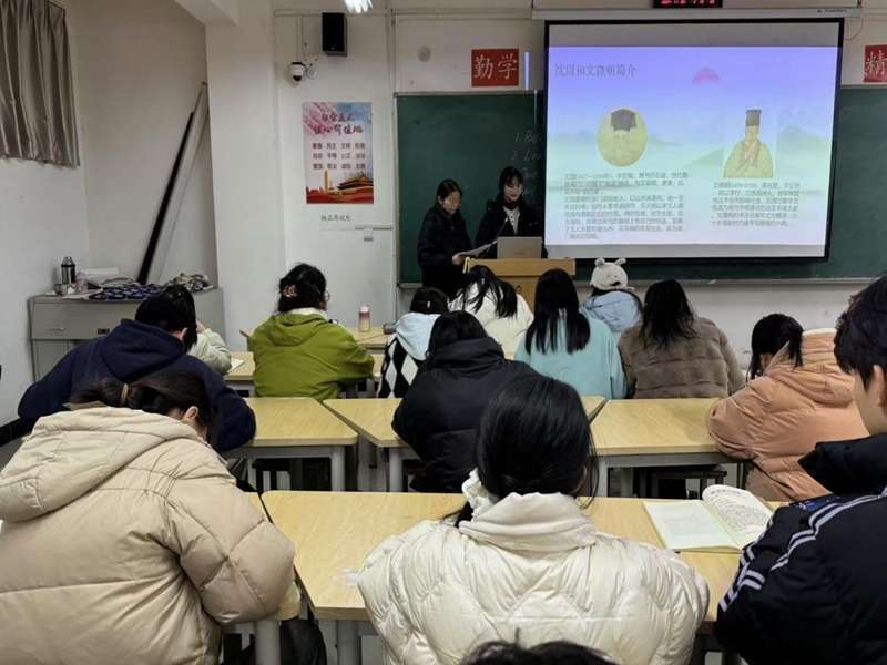 在交流会上,主讲人通过介绍和视频分享引导同学们从不同角度去领略书籍的魅力,引导同学们讨论书籍内容,表达了文人们虽远离官场,却仍心系社会,通过绘画传达对现实的关注与思考。书中体现了地域文化对吴门四家艺术风格的塑造,让同学们感受到古代艺术大师的审美和创造力。