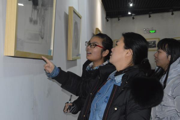 开幕式结束后,领导和师生共同参观了展览,并进行现场交流。