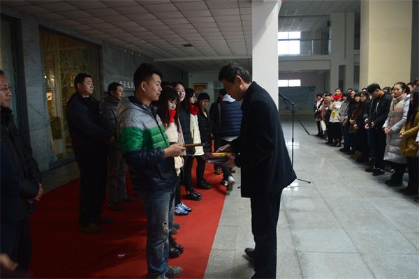 开幕式上,首先宣布了本次展览获奖学生名单并颁奖。一等奖6名,由院长梁立民颁奖;二等奖12名,由书记李信生颁奖;三等奖16名,由副书记郭燕沫、副院长陈向阳颁奖。梁立民院长作了重要讲话,他肯定了我院师生的努力成果,对学生作品给予了很高的评价,并对学生寄予了更大的希望来成就自己的梦想,指出课业作品展是艺术设计学院推动专业建设、探索课程改革、改进教学方法的自觉梳理与汇报,是在学院转型发展下构筑应用技术大学的教育方式、思想方法和创造途经的一次检验。同时也是对艺术设计学院提出“以展促教,以赛促学”的教学成果的集中体现。