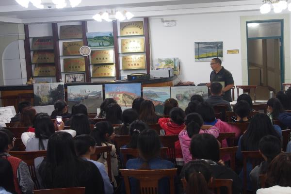 2015年10月17日——10月26 日,艺术设计学院2014级美术学全体学生在梁立民院长、美术学教研室主任李茂丹、专业教师汪滢滢、朱玉以及外聘教师聂卫星等的带领下,赴山东青岛崂山写生基地,进行了为期10天的风景写生实践教学活动。写生期间,邀请北京印刷学院艺术设计学院基础部主任梁智龙副教授、驻马店市群众艺术馆专职画家张伯杰与老师和学生进行了学术交流。