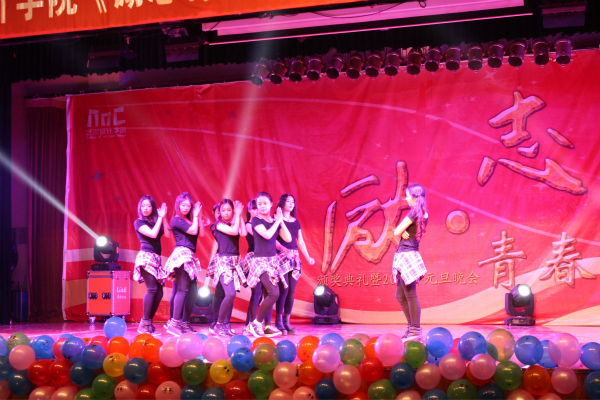 晚会在一支动感的开场舞中拉开帷幕,紧接着,由院长梁立民发表新年致辞,他总结了上一年我院取得的部分成就,以及对新的一年的美好展望,他对全体师生在2014年所做的工作与努力给予的充分的肯定,并对此表示充分的感谢。接下来的对唱歌曲《屋顶》将观众们重新带回到晚会的气氛当中。幽默诙谐的小品《卖火柴的小女孩》使现场的笑声此起彼伏,而武术《太极拳》则充分的展现了中华武术的博大精深。舞蹈《Number.nine》引起场下观众一次又一次的尖叫,引爆全场;小品《甄嬛传》更是以反串的形式让观众们捧腹大笑再次将气氛带入高潮。古筝弹唱《彝族舞曲》更是余音绕梁,不绝于耳,充分的让观众们感到中华文化的源远流长与魅力所在。接着,街舞《一分一秒》再次将气氛推向高潮。<?xml:namespace prefix = o ns = "urn:schemas-microsoft-com:office:office" />