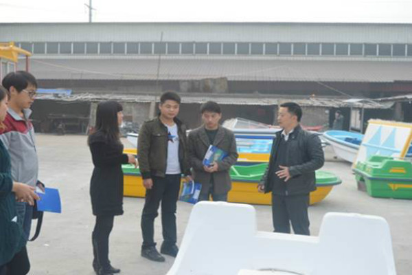 公司经理王娟带领师生们先后参观了模具制造车间、半成品加工车间、成品完善车间等,并讲解了各个车间的生产流程及原理。王经理介绍了公司主要生产经营各种玻璃钢游艇、画舫、高速艇、工作艇、冲锋舟、电动艇等玻璃钢制品。