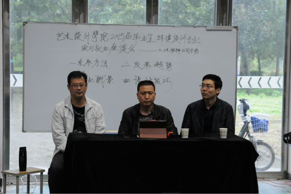 此次座谈会,主要是由驻马店市大地装饰公司负责人针对环境设计毕业生实习就业的问题进行分享。会议主要围绕以四个方面进行:一、求职方法 二、发展趋势 三、职业“钱”景 四、设计技巧来展开讲述。会上,三位嘉宾结合自己的创业经历与专业经验用生动的案例饱含激情的语言,带动全体学生们对未来行业专业的热情。整场会议在热情洋溢的氛围中进行。