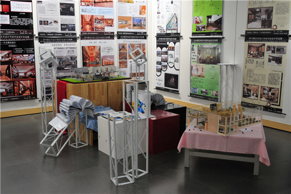 2014年5月26日——28日,艺术设计学院环境艺术设计专业毕业展在黄淮学院美术馆开展。设计作品主要汇聚了室内设计、景观设计、家具设计及模型制作这几大方向。我院在毕业设计的选题和指导原则上始终坚持“企业命题、双师指导、协同完成、市场检验”,鼓励学生选择参与真实项目,并在实习中完成毕业设计,这也是我院在培养各专业学生过程中一贯要求和宗旨。毕业设计要扎根地方文化,服务地方经济,实现作品向商品的转化,最终达到应用型人才的培养的目的。