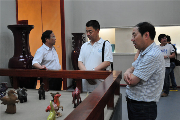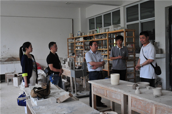 2014年5月23日艺术设计学院院长梁立民、副院长陈向阳带领部分教师一行五人前往平顶山艺术设计学院进行参观学习。平顶山艺术学院院长及部分领导教师带领我院考察团参观了特种工艺实验室、专业实验室,并着重考察了学院陶瓷研究所,听取了中国陶瓷设计艺术大师介绍汝瓷等相关知识与制作技法。