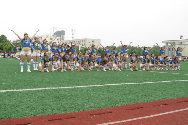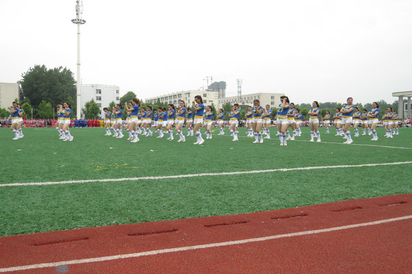 5月13日下午,黄淮学院第三届健身操比赛在北院体育场隆重举行,副校长、体育委员会主任王冰、副校长王瑞丽、体育委员会副主任成员单位领导出席开幕式。开幕式由体委副主任、体育系主任杨建国主持。我院代表队作为第三支队伍上场。<?xml:namespace prefix = o ns = "urn:schemas-microsoft-com:office:office" />