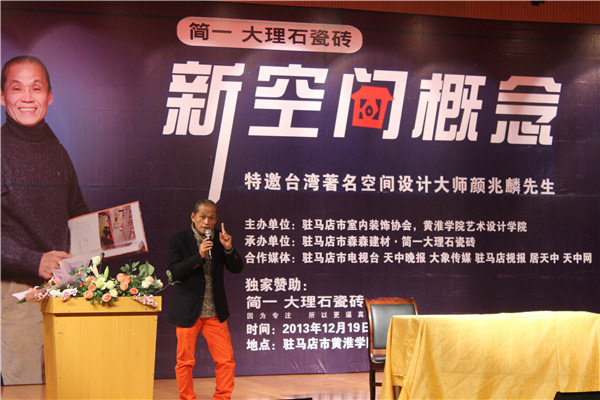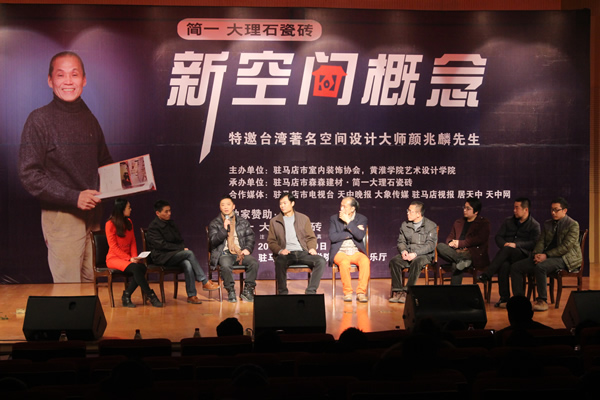12月19日下午,台湾著名空间设计大师颜兆麟先生应我院邀请在艺术楼音乐厅作了题为“新空间概念”的学术讲座。驻马店市森森建材·简一大理石瓷砖总经理吴威、驻马店市海洋装饰工程有限公司总经理郭保磊先生等我院合作联盟企业领导、我院副院长陈向阳及相关专业教师和学生参加了本次讲座。<?xml:namespace prefix = o ns = "urn:schemas-microsoft-com:office:office" />