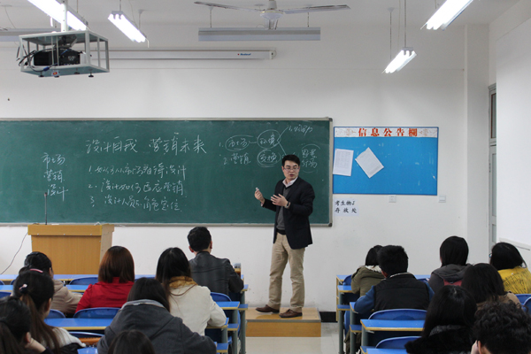 <?xml:namespace prefix = st1 ns = "urn:schemas-microsoft-com:office:smarttags" />2013年4月23日,在艺术楼305教室,合作联盟企业蓝海营销策划有限公司总经理薛茂川先生为我院学生做了一场名为“设计自我、营销未来”的专题讲座。讲座针对我院师生就市场、设计、营销及专业的关系,如何提高专业能力与如何规划未来等问题进行展开讲述。<?xml:namespace prefix = o ns = "urn:schemas-microsoft-com:office:office" />