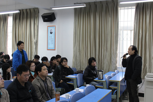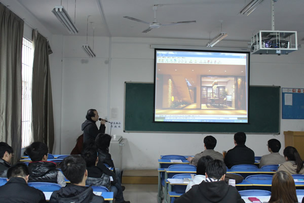 首先,杨先生用细致生动、图文并茂的课件为我院学生讲解了关于室内设计装饰的要点及方法,杨超先生通过展示公司中的优秀项目及案例使我院学生更深的体会了室内设计装饰的原则及室内装潢的宗旨。杨先生讲解完毕后,我院学生积极与企业的经理和设计师进行了互动,并就我院学生在专业学习上出现的问题进行了详细的解答,提出了诚恳的建议与看法。