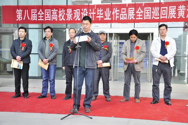 2013年4月11日上午“第八届全国高校景观设计毕业作品展全国巡回展黄淮学院站”在美术馆隆重开幕。开幕式由艺术设计学院副院长陈向阳主持。出席开幕式的嘉宾有黄淮学院教务处处长李东亚、驻马店市美术家协会主席薛水生、驻马店市良辰美景装饰有限公司经理王建中先生等八家合作联盟单位领导以及设计师团队、黄淮学院国际学院院长张保来、生物工程系主任李恩中,艺术设计学院的院长梁立民、副书记郭燕沫、副院长李伟力等师生也参加了开幕仪式。驻马店市美术家协会主席薛水生宣布了展览开幕。<?xml:namespace prefix = o ns = "urn:schemas-microsoft-com:office:office" />