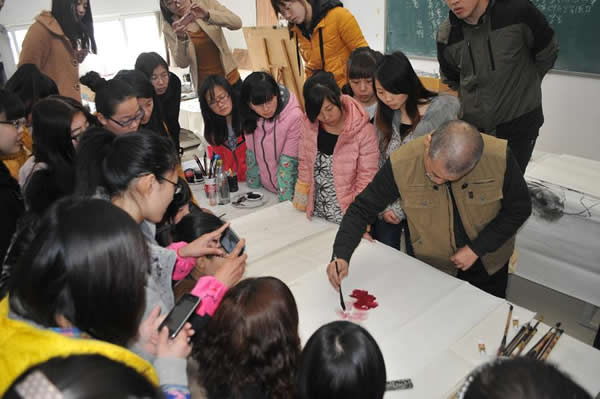 3月5日上午,著名画家李新国来我院讲学,学院领导、相关教师及美术学专业2010级同学在国画工作室参加了此次讲座。李老师以质朴的语言和丰富的阅历给学生上了一堂生动的国画创作课,通过现场创作,不仅为同学们鲜活的讲述了其对绘画创作的理解和对人生的感悟,也让学生在观摩专业技艺的同时领悟学习的真谛。此次讲学对于学生树立正确的学习态度,明确学习方向具有重要意义。<?xml:namespace prefix = o ns = "urn:schemas-microsoft-com:office:office" />