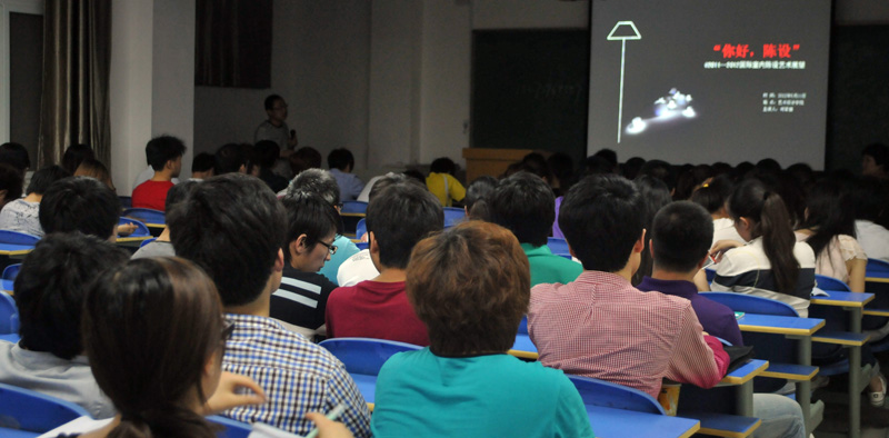 主讲人何军旗老师,通过“你好——陈设”的讲座,细致的讲解了家具陈设在室内设计中的具体应用。并通过近两年的国际家具展的现场照片讲述了在空间内如何将家具陈设、家居配饰、家居软装饰等元素通过完美的设计手法表达出空间意境,并使得整个空间满足人们的物质追求和精神追求。同学们在此次讲座中受益匪浅。