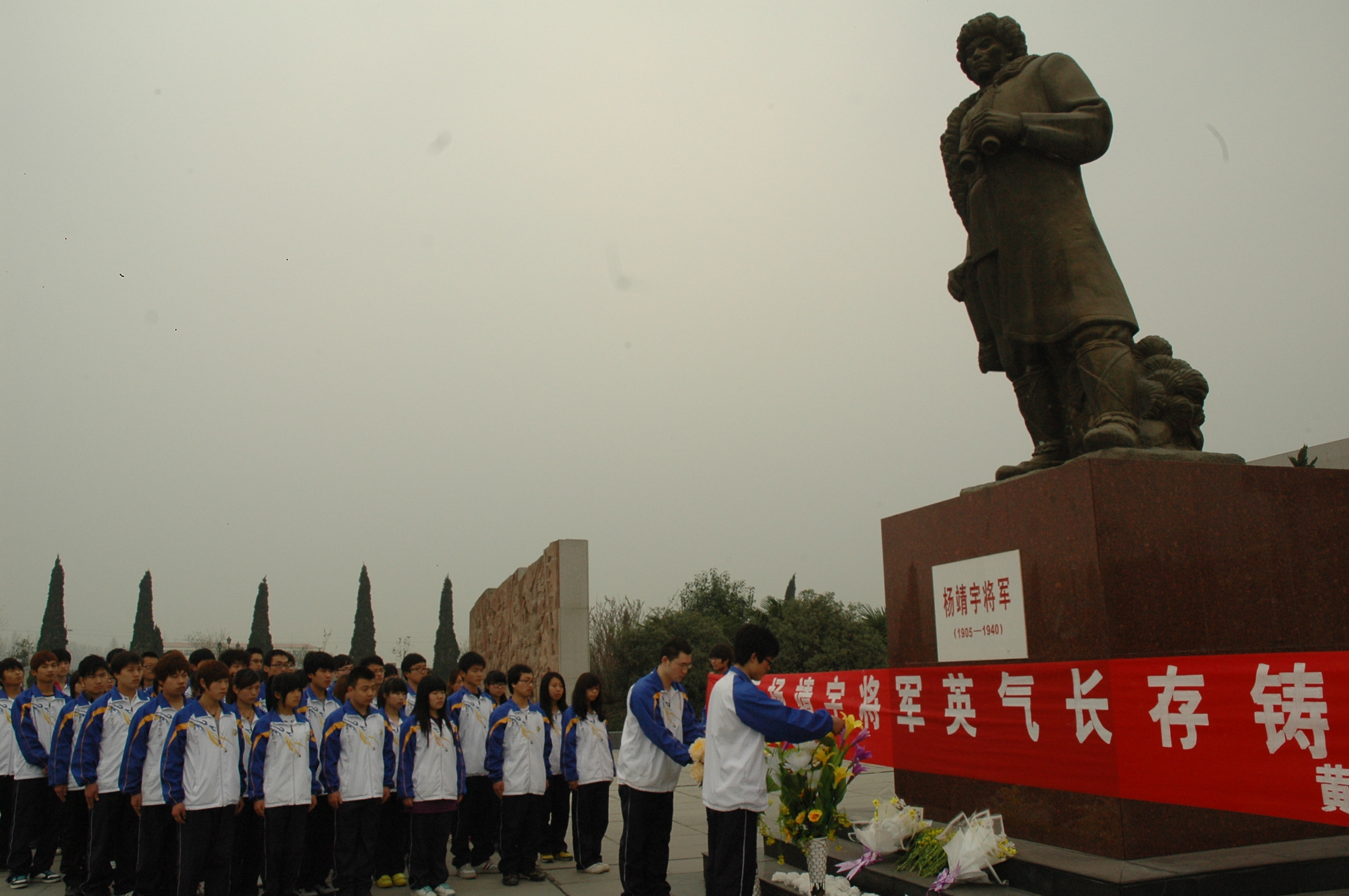 杨靖宇将军是中华民族抗日英雄,他的雕像矗立在纪念馆广场中央,同学们在杨靖宇铜像前纷纷献上自己亲手折的纸花并集体向铜像哀悼和鞠躬,随后同学们在有关负责人的带领下参观了杨靖宇纪念馆,并观看了有关杨靖宇将军的纪录片。