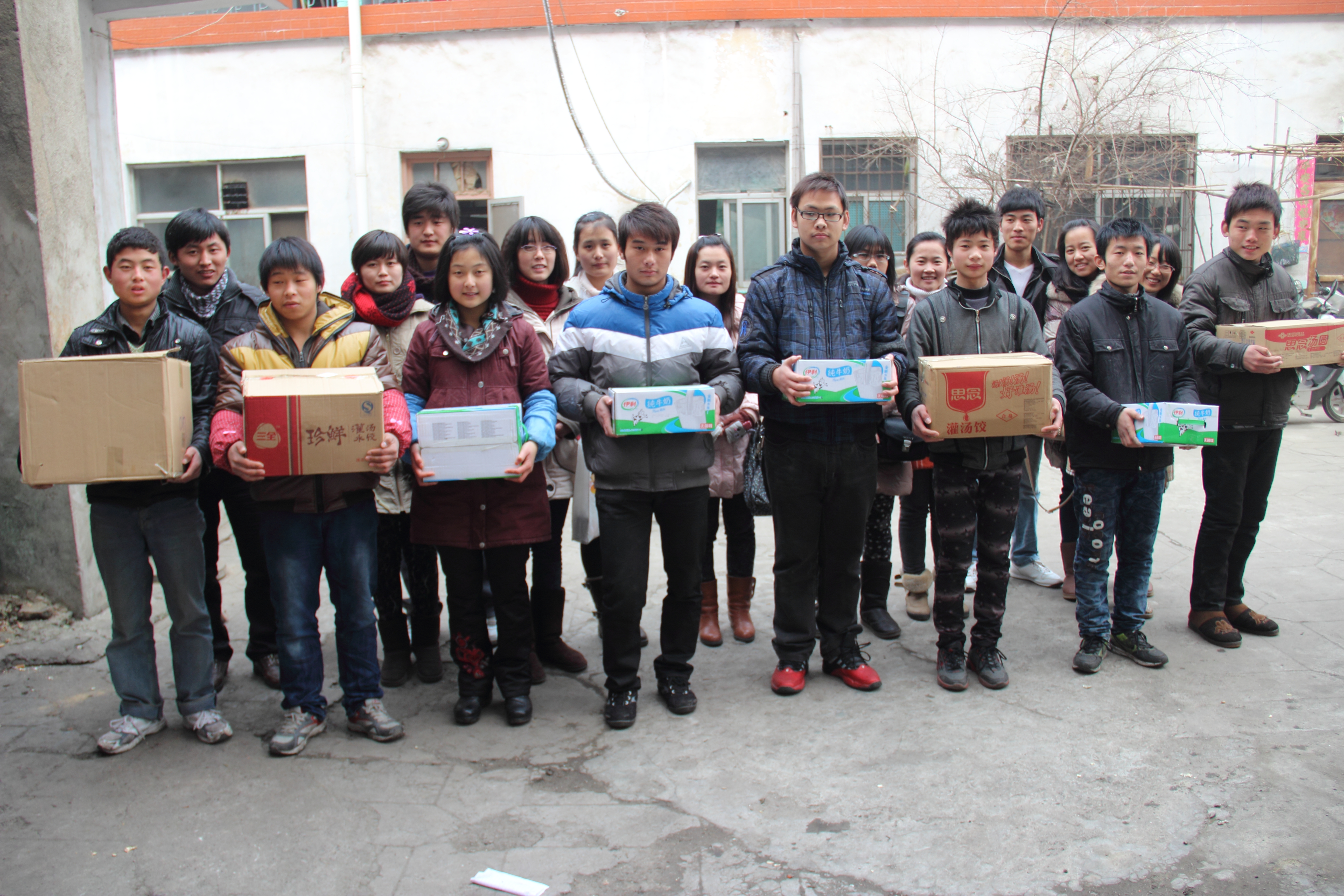 点点星光,照亮黑夜,颗颗爱心,温暖人生,在很多家庭包饺子迎接冬至到来之际,一群来自省内外的学生却想着让那些生活在聋哑学校的孩子们感受到冬日的温暖。 12月22日冬至这天,黄淮学院艺术设计学院艺术设计2010级1班2班的党员、团员一行8人带表全班80位同学的捐赠和寄托,拿着水饺、汤圆、牛奶、防寒用具等来到驻马店市特殊教育学校,和这里住校的学生、老师共同过冬至。同学们的到来受到了特殊教育学校师生的热烈欢迎,他们与孩子们一起包饺子、做游戏、通过书写交流,使大家感到虽在寒冬,却暖意浓厚。通过此次活动不仅使同学们更加全面的了解聋哑、智障儿童社会弱势群体的生活、学习状况,也让大家更加珍惜自己现在的学习环境。