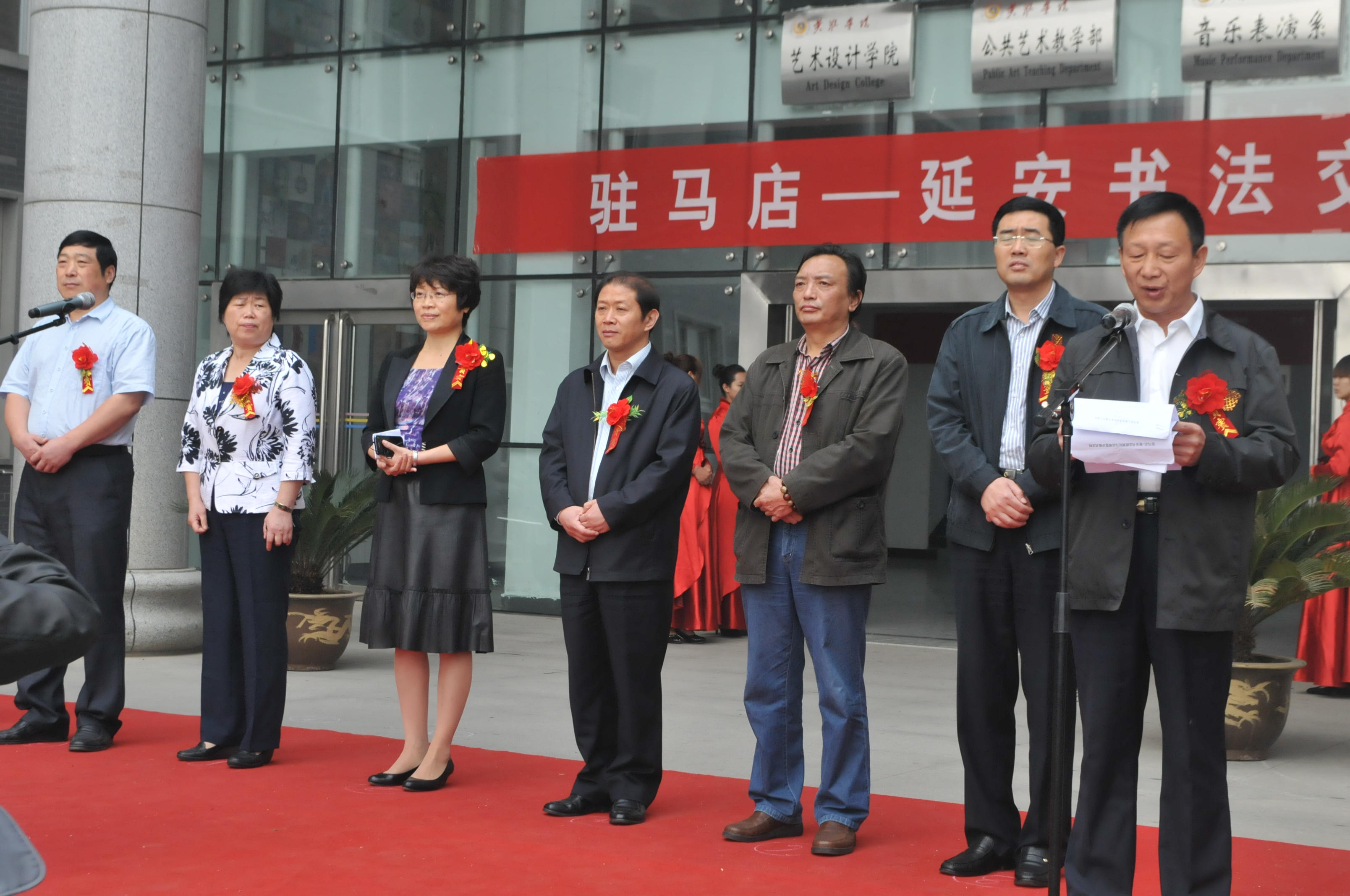 驻马店市委常委、宣传部长赵焕之,驻马店市委常委、副市长郜秀菊,黄淮学院校长介晓磊,延安书画界代表,市委、市政府相关部门,及市书法家协会、黄欢学院艺术设计学院负责人出席开幕式。开幕式由驻马店市文联主席谢元涛主持,驻马店市委常委、副市长郜秀菊,和延安代表分别致辞,驻马店市委常委、宣传部长赵焕之宣布开幕。