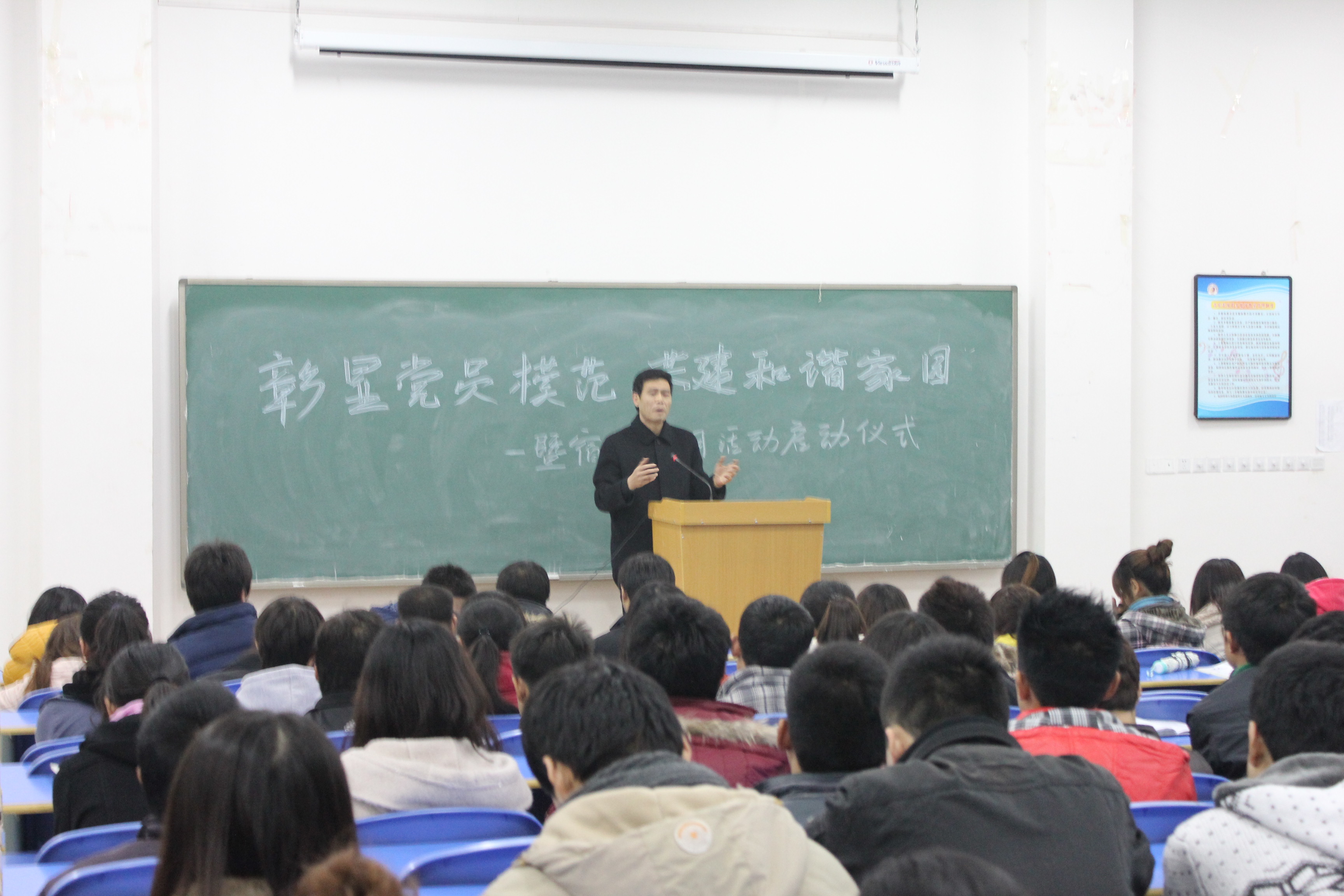 为做到安全警钟长鸣,丰富宿舍文化生活,营造一个温馨舒适的“家园”。11月28日晚7点,我院在艺术楼52111教室举行宿舍文化月活动启动仪式。党总支书记李信生,宿管部负责老师戚建永以及全体学生党员、预备党员、入党积极分子、寝室长参加了此次仪式。<?xml:namespace prefix = o ns = "urn:schemas-microsoft-com:office:office" />