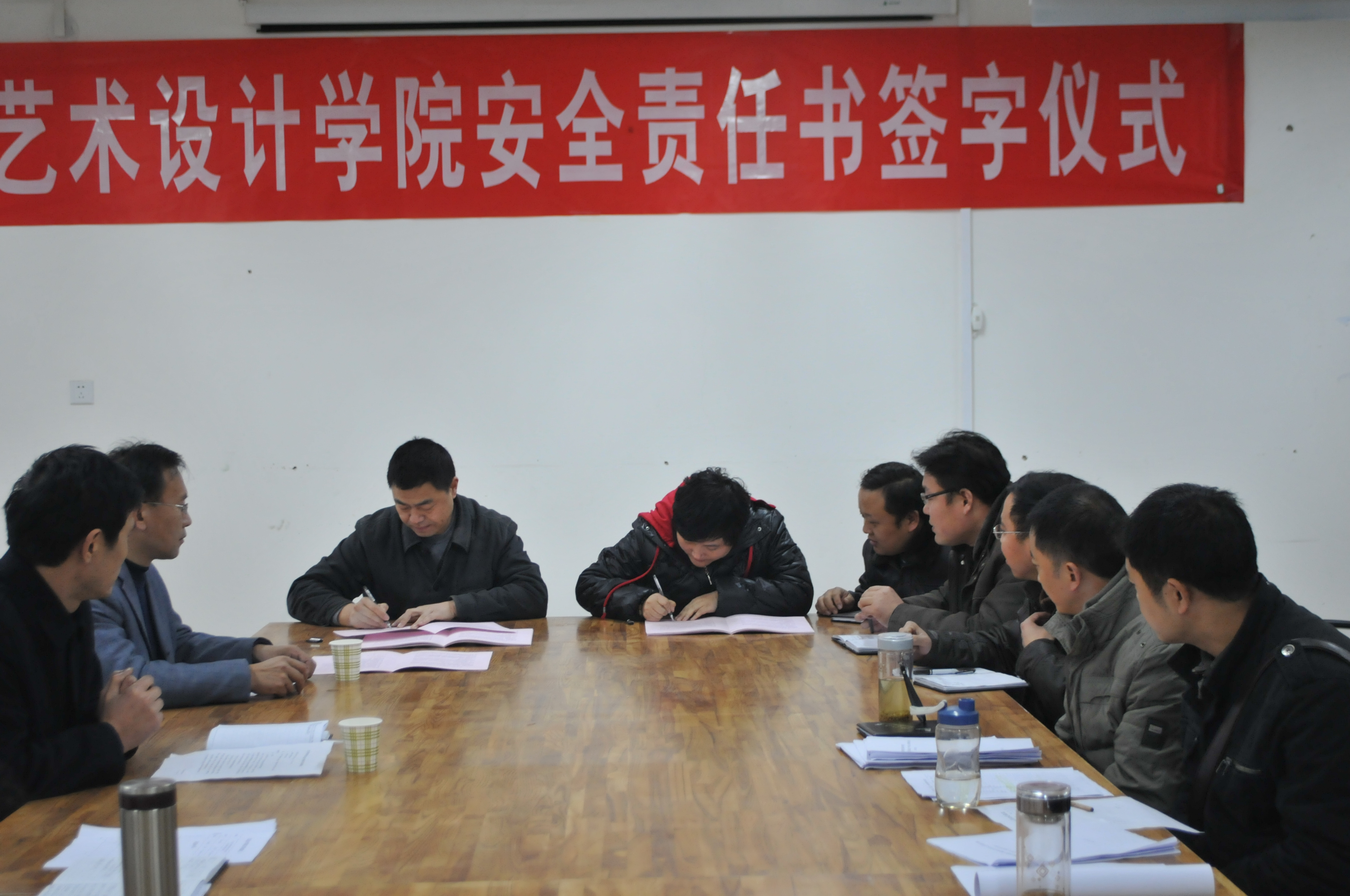 学校保卫处处长张文继、艺术设计学院党政班子成员及全体教师参加了此次签订仪式;艺术设计学院党总支书记李信生主持仪式,院长梁立民代表艺术设计学院先后同两办、各教研室、教学秘书、教务员、班主任、辅导员等签订安全工作责任书。