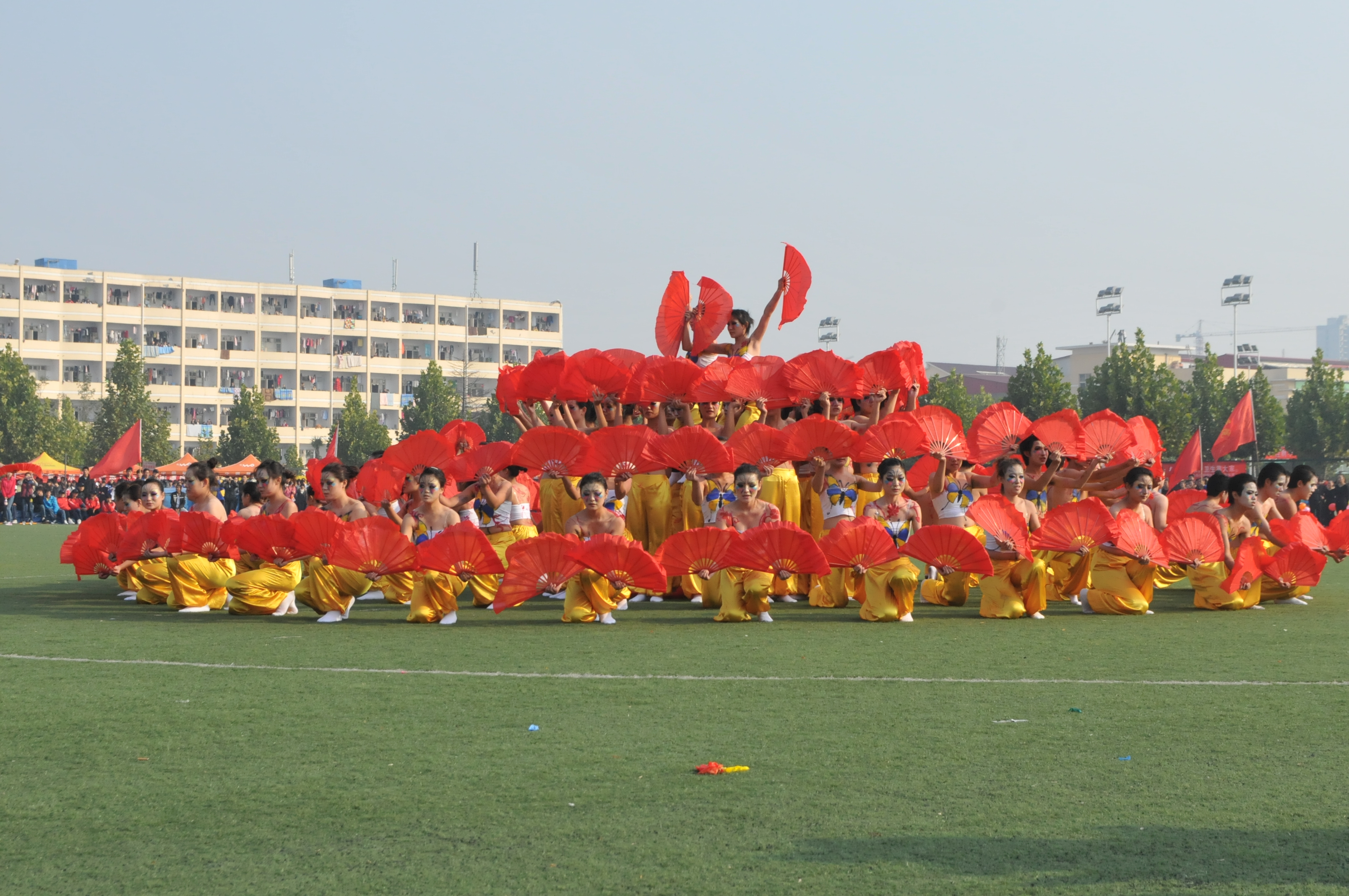 8:40,艺术设计学院以整齐独特的动漫方队亮相在全校师生面前;百人彩绘的百蝶扇舞更是震撼了全校两万余名师生。我院以全新的面貌,最独特的风格,最具有艺术设计感的造型骄傲的向全校宣告着我们的优秀。