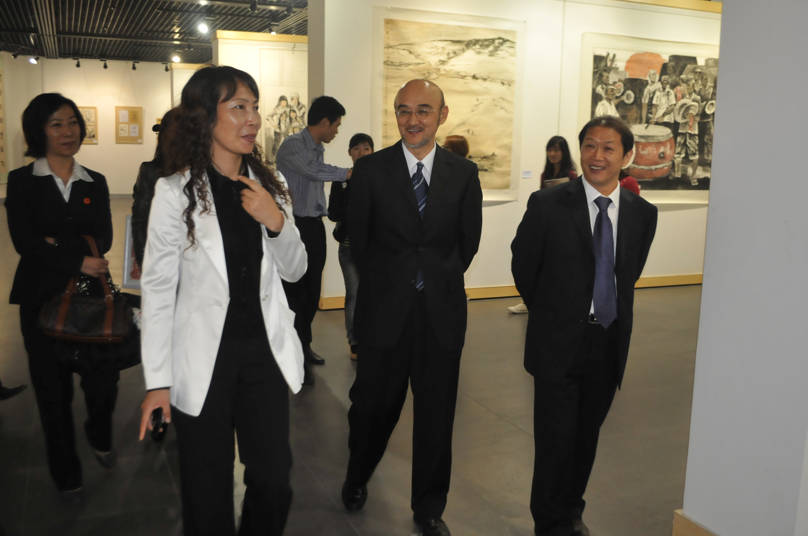 10月11日,台湾中华大学校长沙永杰在校长介晓磊、副院长谭贞等相关只能部门领导的陪同下,莅临我院参观交流。沙校长边观看学生剪纸社团作品展边与师生热切交流,对陈明杰的剪纸作品《清明上河图》给予高度评价,欣然接受了学生代表赠送的民间剪纸作品并合影留念,随后来到展厅饶有兴致的听取讲解员对师生作品创作的剖析,并对环保题材的设计作品提出了自己的看法,最后在展厅挥毫留念。此次参观访问,进一步加强了海峡两岸高校之间的教育、教学经验的交流,对我院教学工作的建设起到了积极地促进作用。
