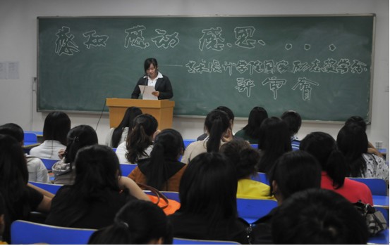 会议以“感知 感动 感恩”为主题。会议过程中每位申请奖学金的同学都认真、详细的叙述了自己的成长历程,用朴实的了语言讲述自己的故事。他们表示“我们是励志奖学金的获得者,学校给了我们帮助和培养,我们将以百倍的努力提高自己的心身素养,提高自己的专业技能和学习水平。我们相信知识能改变命运,我们会积极投入为班级服务,为学院做贡献的队伍当中,努力回报社会。”